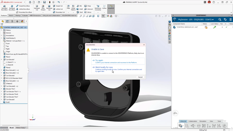 Możliwość pracy w trybie offline przy nieplanowanej utracie połączenia z platformą oraz blokowanie poleceń w trybie ciągłym sprawiają, że interfejs staje się mniej inwazyjny, a konstruktor może skupić się na modelu zamiast na obsłudze narzędzi.
