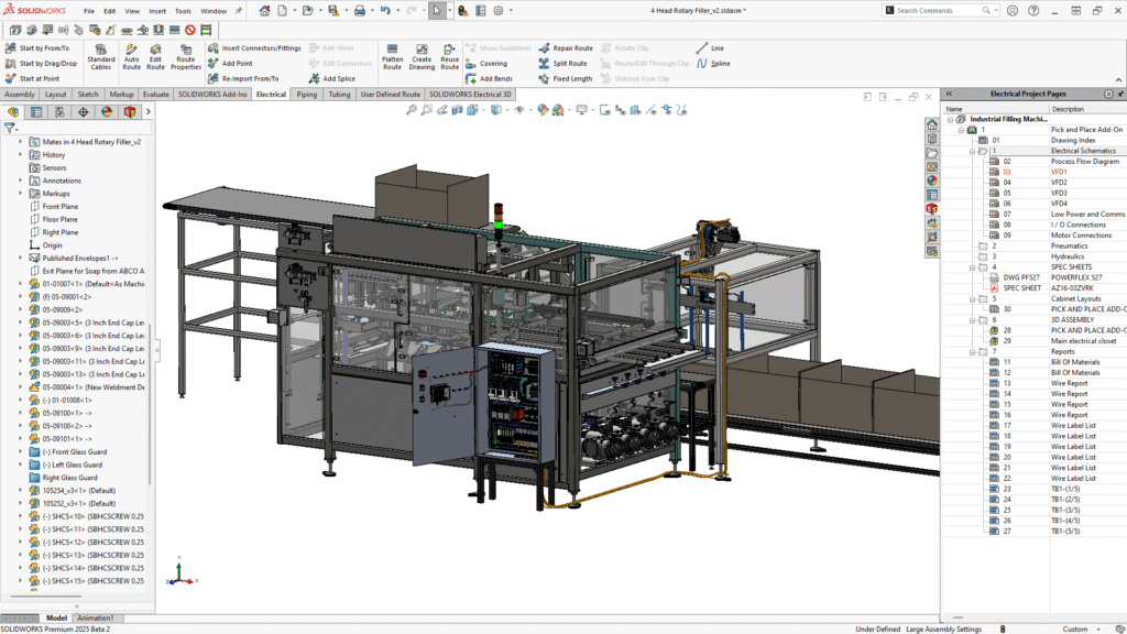 SOLIDWORKS Electrical Professional łączy inteligentne schematy 2D oraz zaawansowane projektowanie elektryczne w 3D w jednym, spójnym środowisku, zapewniając pełną kontrolę nad projektem od koncepcji aż po produkcję.