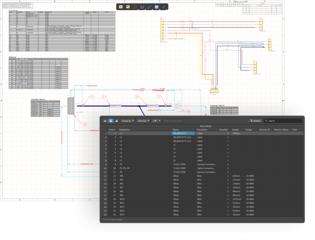 Możliwość dokładnego śledzenia wyboru elementów dla wiązki i PCB, oraz zapewnienia terminowego montażu urządzenia, poprzez generację BOM oraz rysunków produkcyjnych bezpośrednio w Altium Designer.
